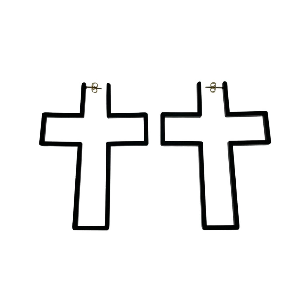 Make a bold statement with these striking black plexiglass cross-shaped earrings. Crafted with precision in Germany, these earrings combine modern design with edgy sophistication.