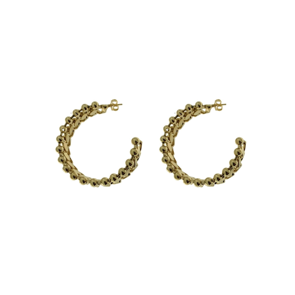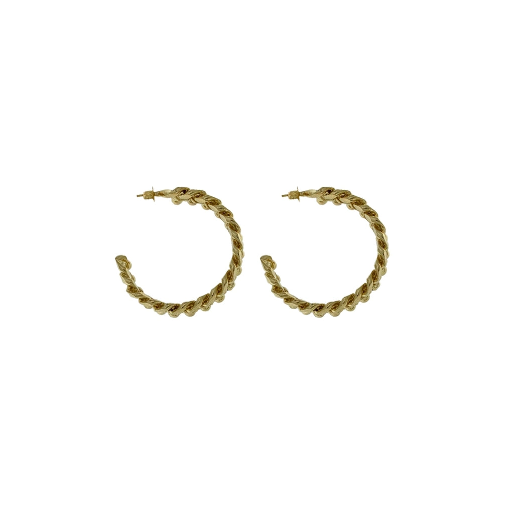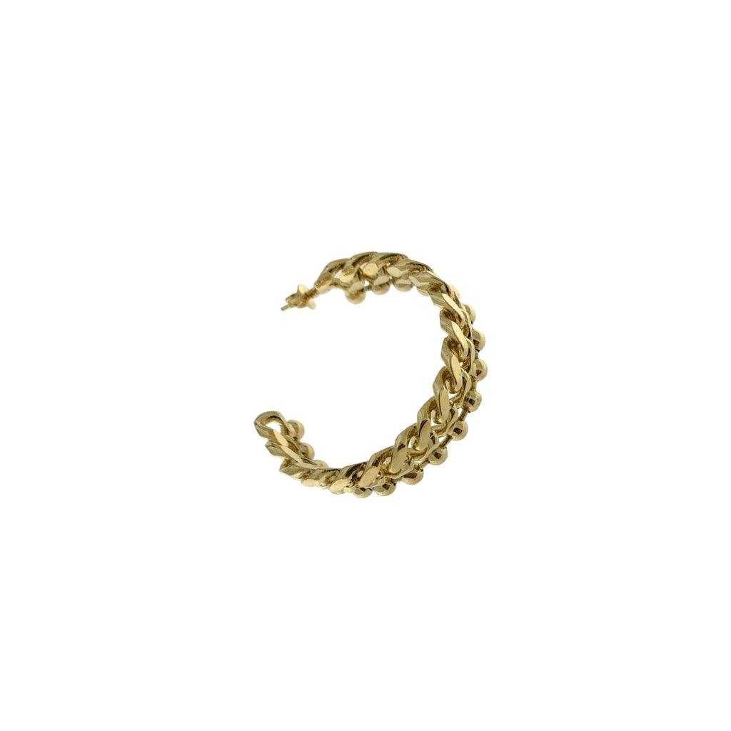 Each piece is created starting from a linear chain, then individually hand-moulded into a hoop shape by soldering each chain link one by one. This process requires significant time and precision, resulting in a unique, fully artisanal product. Approximate measurements: 1 cm wide, 4 cm in diameter.