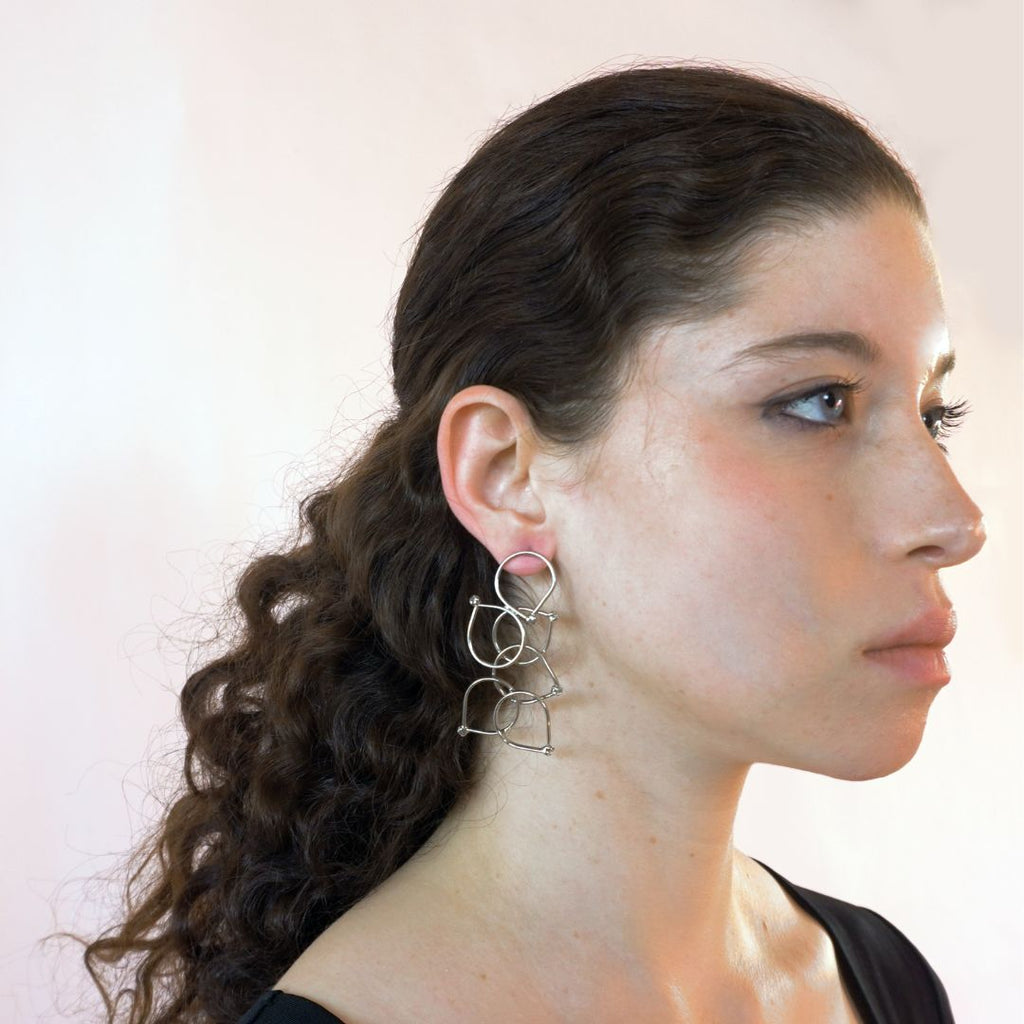 Elegant craftsmanship meets contemporary design in these six-ring linked brass earrings. Each piece is meticulously handmade in Italy, featuring six interlocking rings soldered together to create a fluid, sculptural silhouette.